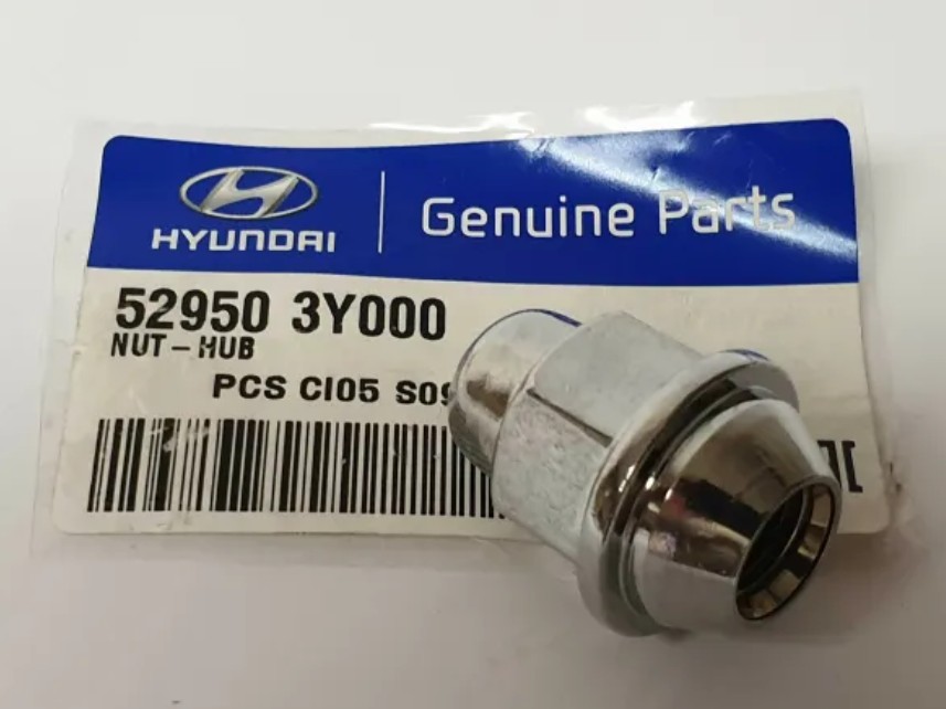 Hyundai hat Kegelbundradmuttern. Hier als Beispiel die Mutter für Stahlfelgen. |