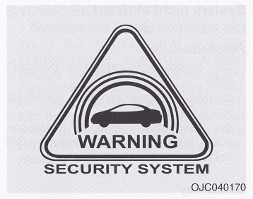 Fahrzeuge mit Alarmanlage haben einen Aufkleber an der Fahrer und Beifahrerscheibe. Wird das System nicht deaktiviert, ertönt 27 Sekunden lang die Sirene (Hupe) und die Warnblinker blinken. |