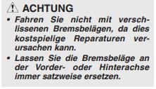 Bitte vor dem Nachstellen der Handbremsseilverstellung bzw. Handbremshebel solltet ihr unbedingt Prüften ob die Bremsanlage bzw. die Bremsen an den Hinterräder in Ordnung sind.