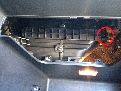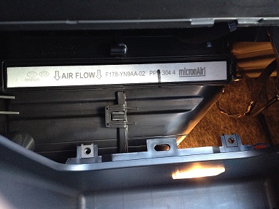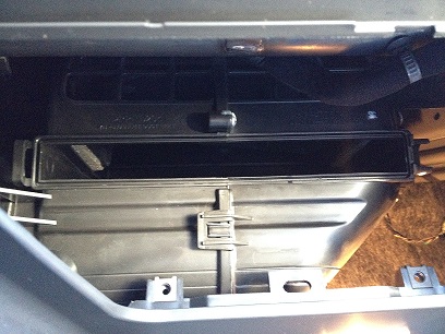 Um an den Filter zu kommen, muss die Halterung im Handschuhfach ausgebaut werden. Die beiden Schrauben lösen und die Halterung heraus nehmen. |