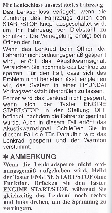 Lenkschloss mit Start-Stop Knopf