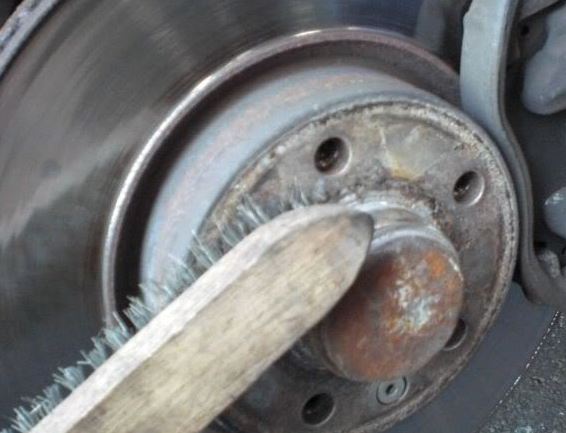 Am besten mit einer Drahtbürste und Bremseinreiniger die Auflagefläche und die Felge an den Stellen säubern. Es darf sich kein Schmutz, Rost oder sonstige Partikel zwischen Auflagefläche und Felge befinden. Auch keine Kupferpaste! Die Nabe muss sauber und staubtrocken sein. |