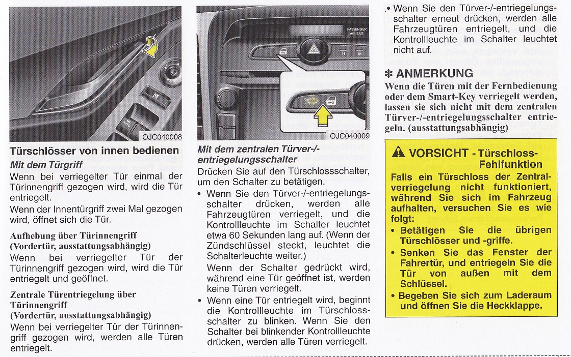 Es sei denn, ihr habt vorher den Schalter zum entriegeln gedrückt! Dann sind natürlich alle Türen entriegelt.