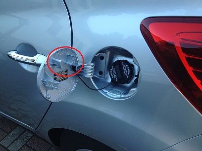 Ein Aufkleber an der Klappe gibt Info was getankt werden darf. |