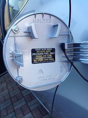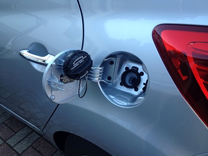 Zum öffnen der Tankklappe den Entriegelungshebel im Fußraum vor dem Fahrersitz ziehen. |
