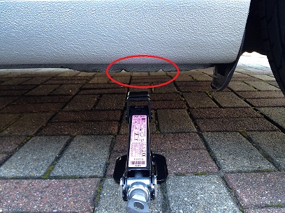 Auf jeder Seite des Fahrzeuges befinden sich vorne und hinten die Wagenheberaufnahmepunkte. Der Wagenheber wird zwischen den kleinen Aussparungen angesetzt.
