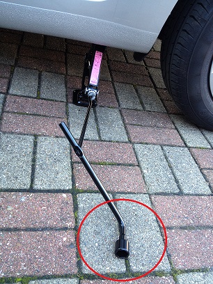 Dann die Wagenheberkurbel in den Wagenheber einhängen. |