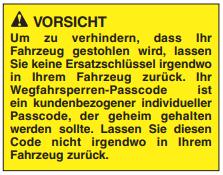 entsprechende Ziffer im Passwort vorgibt; die Wegfahrsperrenanzeige