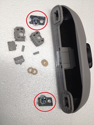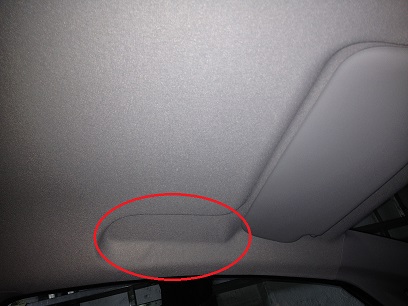 Das Brillenfach muss aber ein wenig bearbeitet werden. (rote Kreise) Das ist nötig, weil sonst das Brillenfach nicht am Dachhimmel anliegt. |
