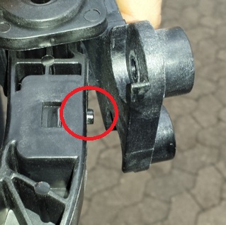 Diesen Nippel einfach absägen. Fertig. Ist eben nur Plastik! Pedal wieder einbauen und den Stecker drauf. |
