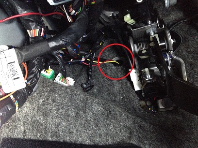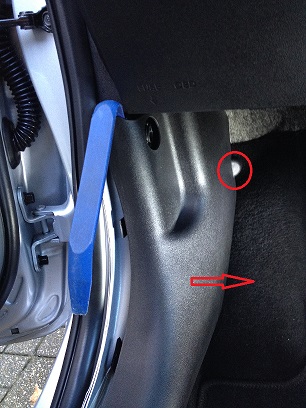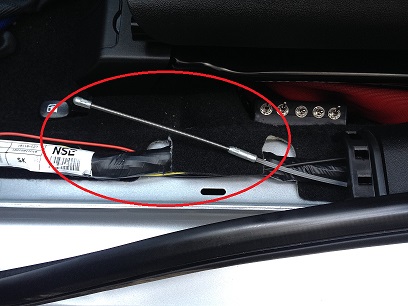Zum Innenraum kommt man leicht durch die „kleine“ Kabeldurchführung an der Spritzwand (Fahrerseite). Dort mit einem stabilen Draht vorsichtig durchstechen und das Kabel in den Innenraum schieben. Man kommt nur leider sehr schwer da ran. |