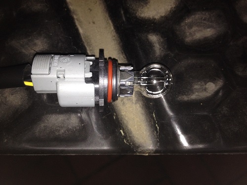Die Kabelkupplung und die TFL-Lampe (Sockel). |