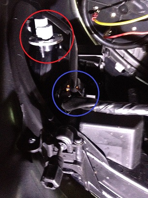 Die TFL Lampe (roter Kreis) im Gegenuhrzeigersinn drehen dann herausziehen. Nebellampe (blauer Kreis). |