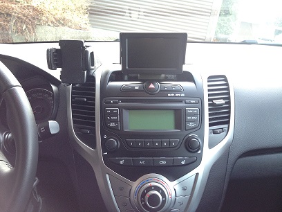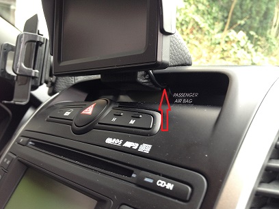 Als Halterung wird eine Kuga-Konsole mittig auf der Radioblende verbaut. Die meisten Saugnapfhalterunen sind meistens nicht stabil genug oder fallen bei Temperaturschwankungen immer wieder ab. Die Adapterplatte muss dann noch richtig positioniere und auf der Konsole verschraubt werden.