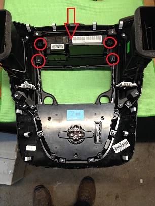 Das geht erstaunlich einfach. Dazu die Radioblende komplett demontieren. Also alle Stecker ab. Dann von der Uhr-Temperatureinheit (roter Pfeil) die vier Schrauben (rote Kreise) herausdrehen. |