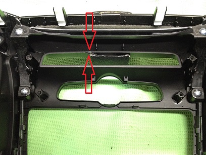 Jetzt muss an der Blende (innen) eine kleine Kerbe gefräst werden (rote Pfeile) Wo genau ist jedem selber überlassen. Ich habe hier die Kerbe für das Kabel direkt neben der Halterung gemacht. Ist nachher so gut wie nicht zu sehen. |