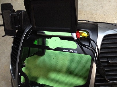 Den Monitors mit der Adapterplatte in der richtigen Höhe anhalten und anzeichnen/anschrauben. So wird verhindert, dass die Uhr und die Temperaturanzeige verdeckt wird. Die Konsole passt genau auf die Radioblende. Sie trägt nicht zu „dick“ auf und passt optisch zur Innenausstattung. |