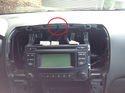Ein Problem sind die Kabel. Ob nun vom Monitor oder Navi. Die Möglichkeit das Kabel unsichtbar zu verlegen ist hier schwierig. Eine Möglichkeit einfach zwischen Radioblende und Armaturenbrett ist keine gute Wahl. Das Kabel kann schnell zerquetsch werden. Wenn überhaupt dann nur genau in der Mitte (roter Kreis) durch fädeln/legen. |