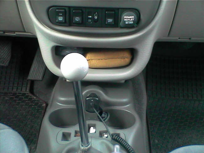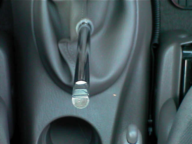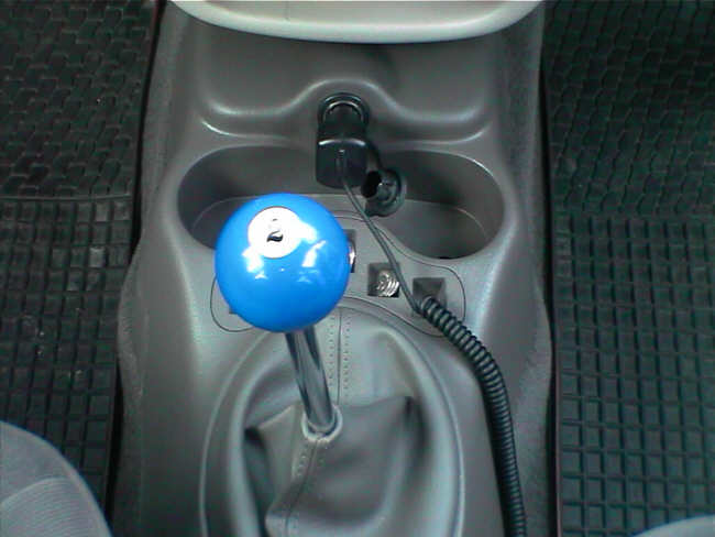 Der Schaltknauf wird einfach nach oben kräftig abgezogen. Nicht drehen, sonst verkanntet er sich! Die Billardkugel wird dann mit Zweikomponentenkleber festgeklebt.